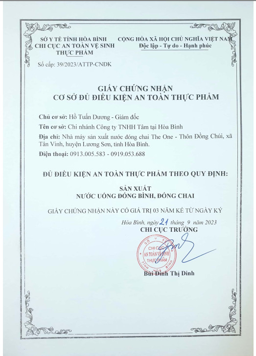 1. Giấy chứng nhận vệ sinh an toàn thực phẩm